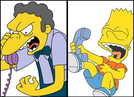 Bart's prank calls occur when Bart Simpson makes a prank phone call to somebody. Usually, it's Moe, but occasionally others are involved as well.